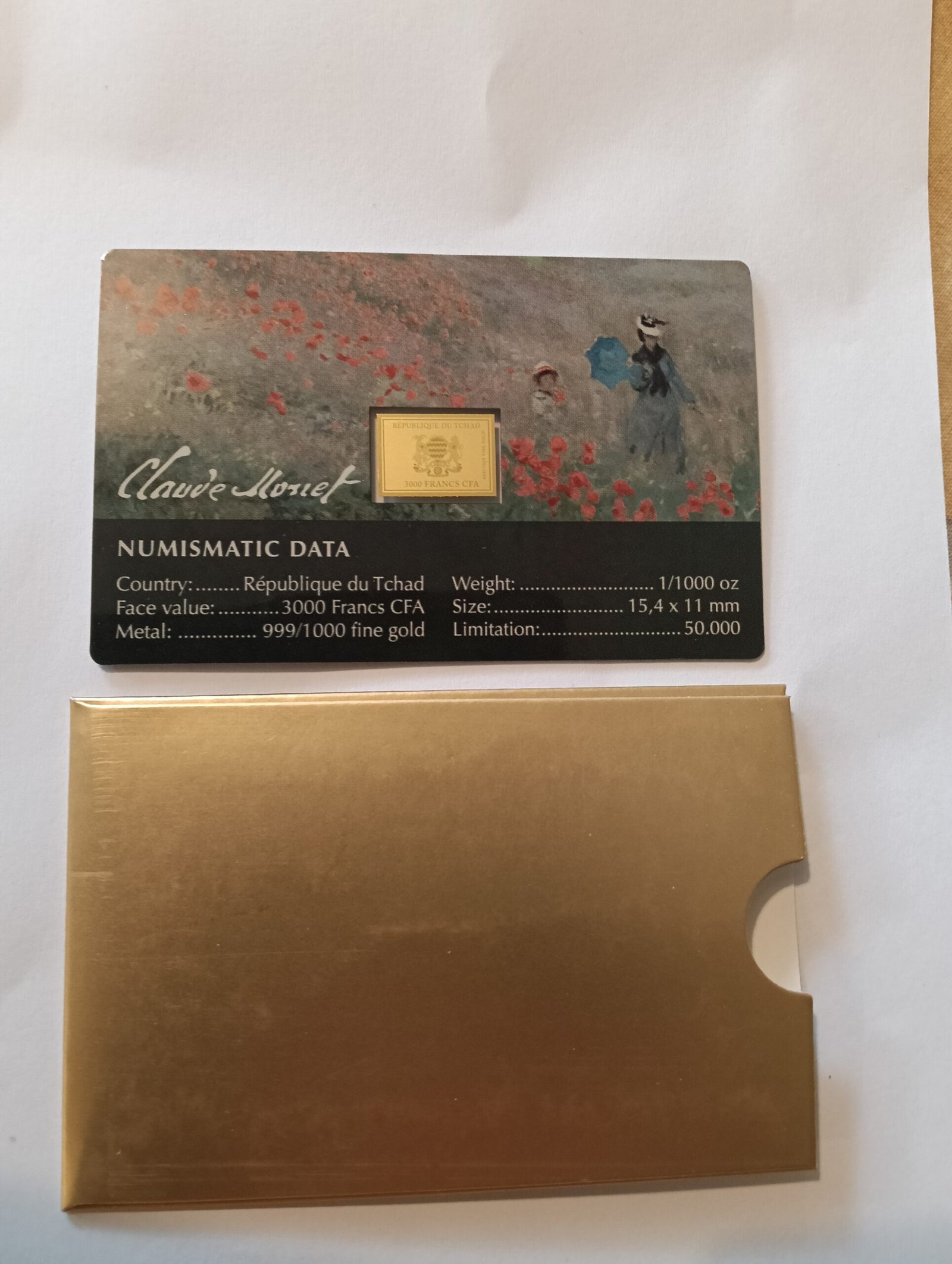Monet he Poppy Field near Argenteuil 1/1000 Oz Gold Coin 3000 Francs Chad 2024