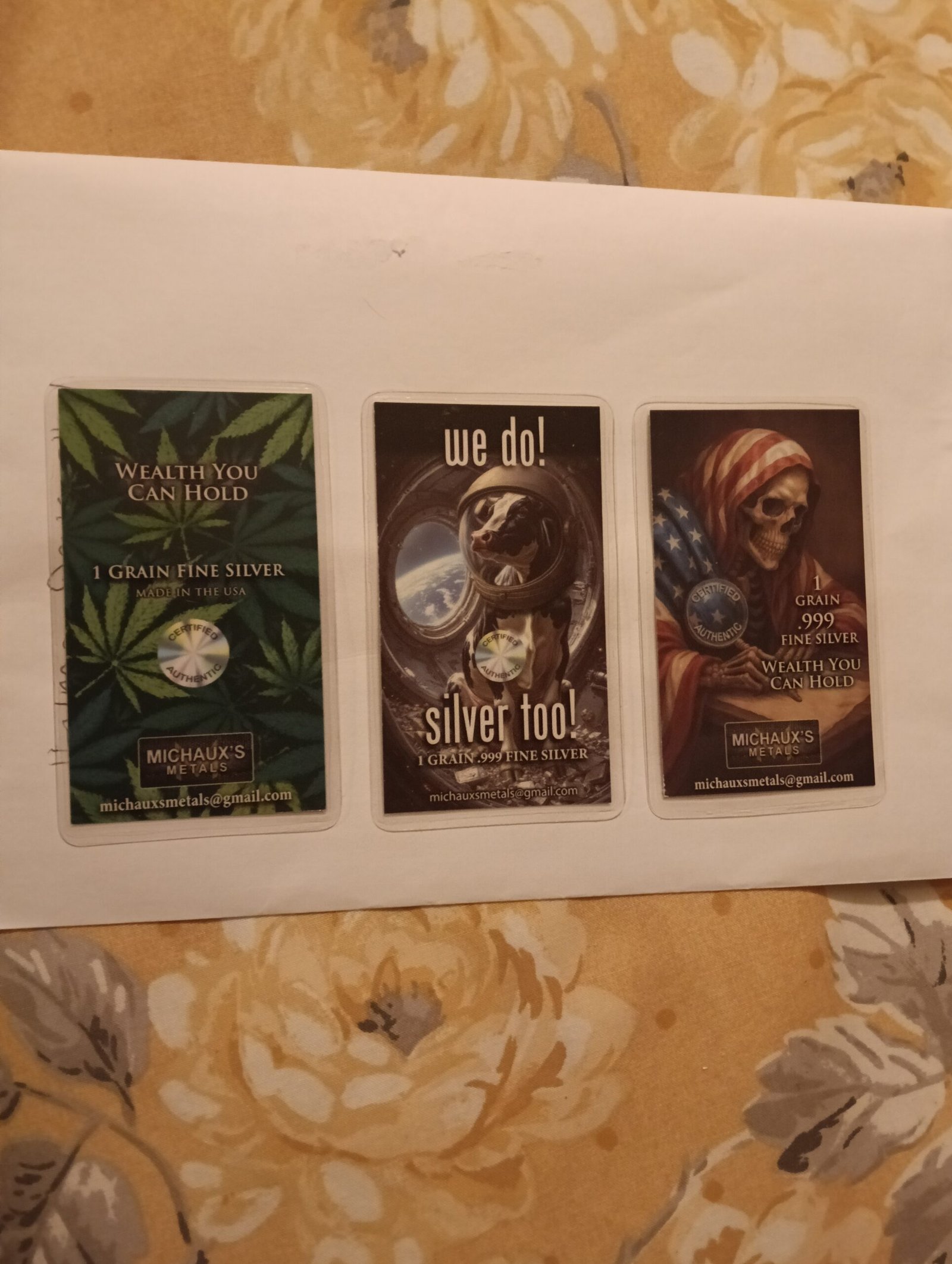 SET OF 3 SILVER BAR CARDS 0.067 GRAMS EACH BAR