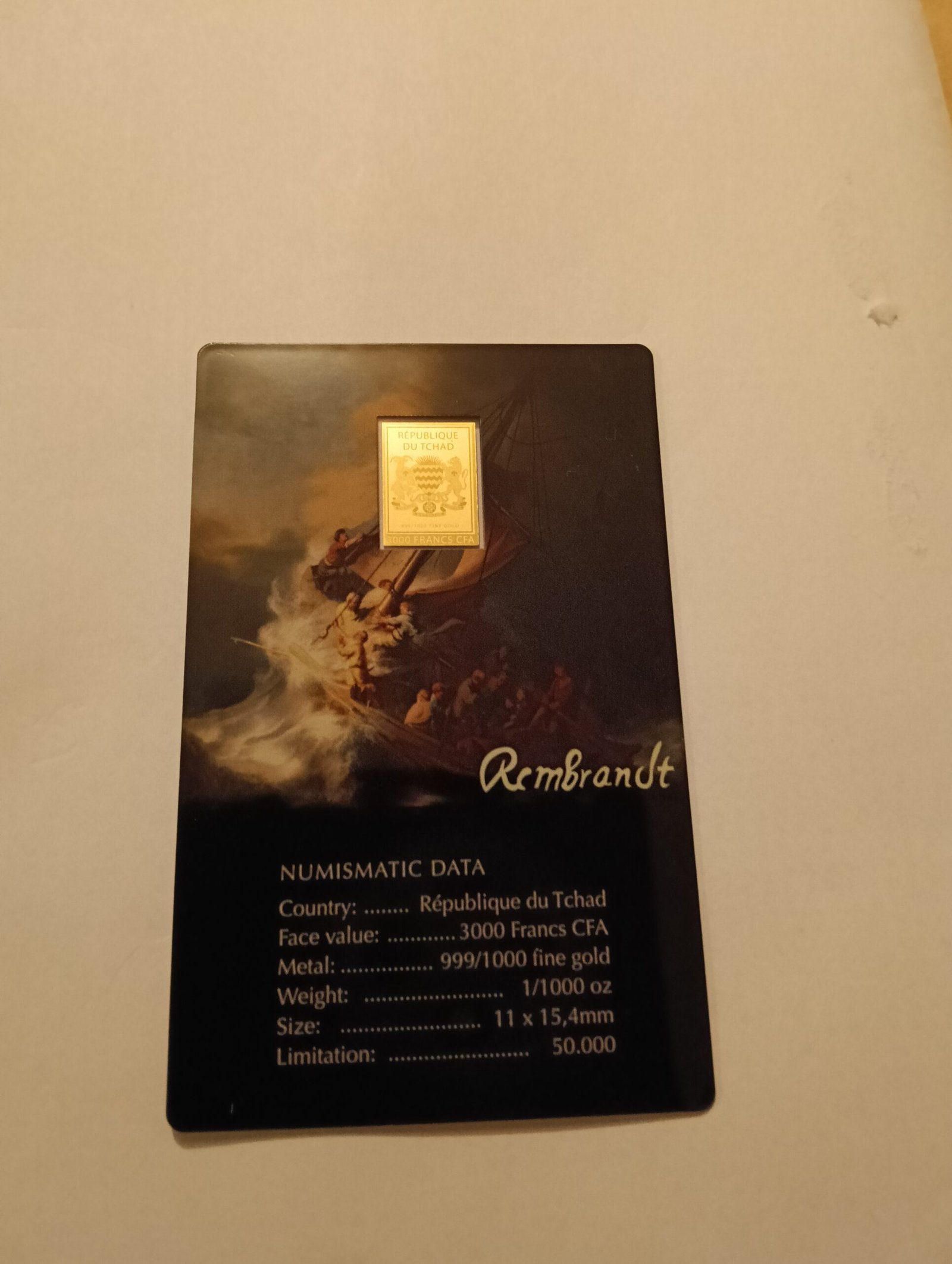 The Storm on the Sea of Galilee By Rembrandt 1/1000 Oz 999 Gold Coin Bar